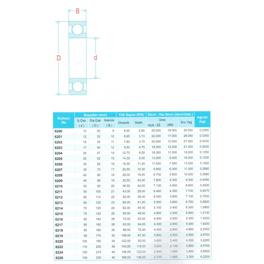 - Ana ölçüler DIN625-1e göre